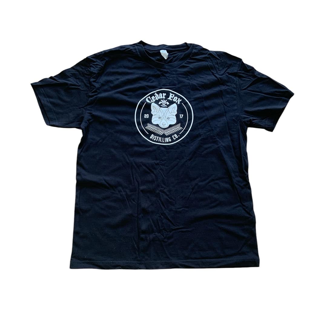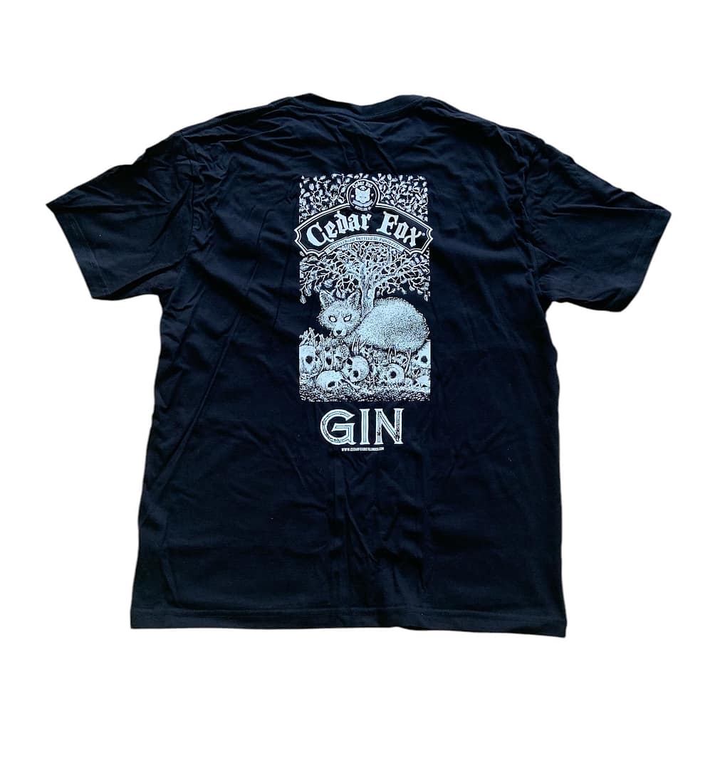 Cedar Fox Gin T-Shirt Black unisex 100% Cotton with white front and rear print.